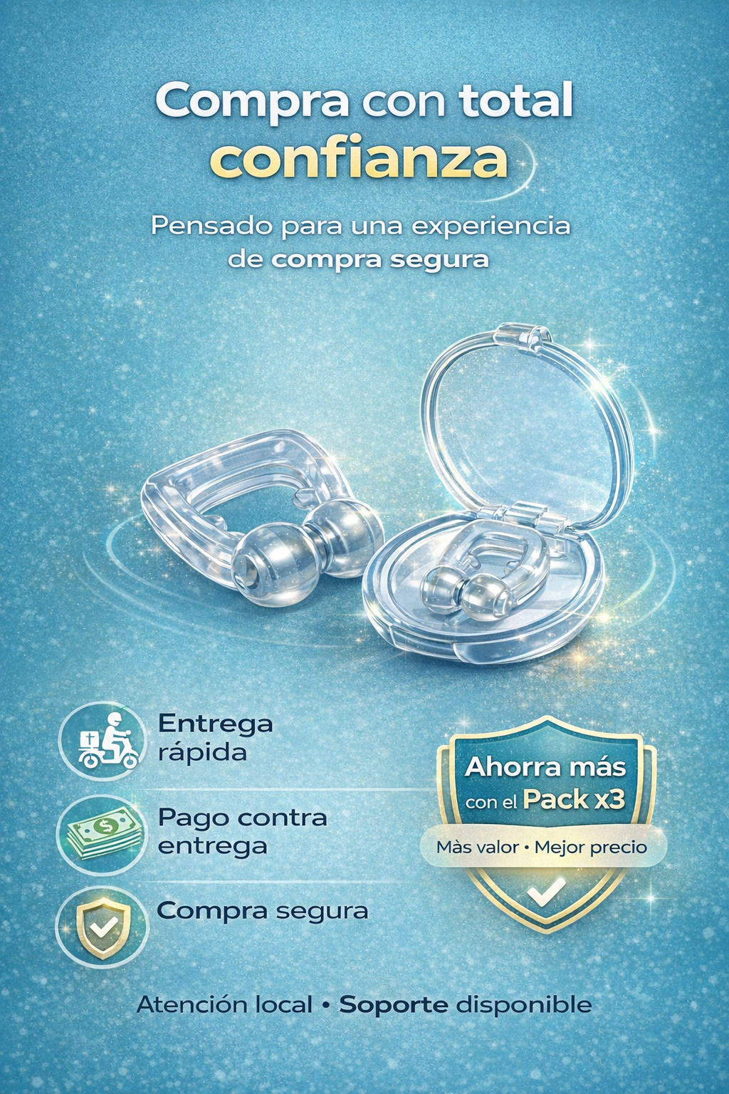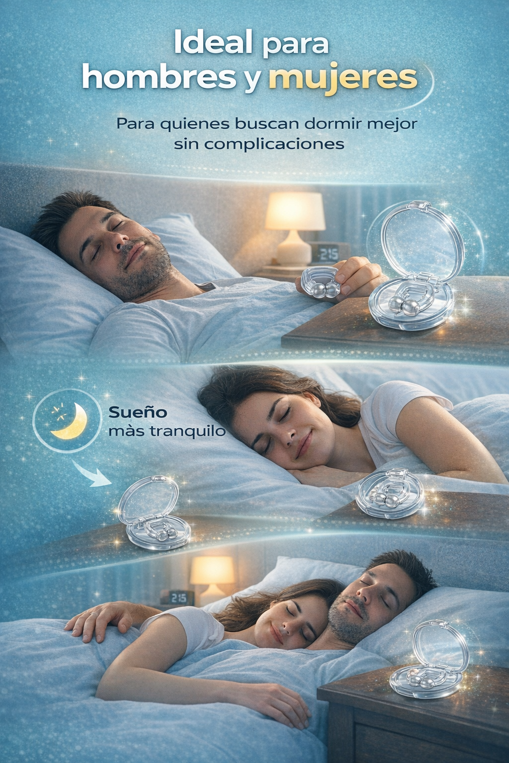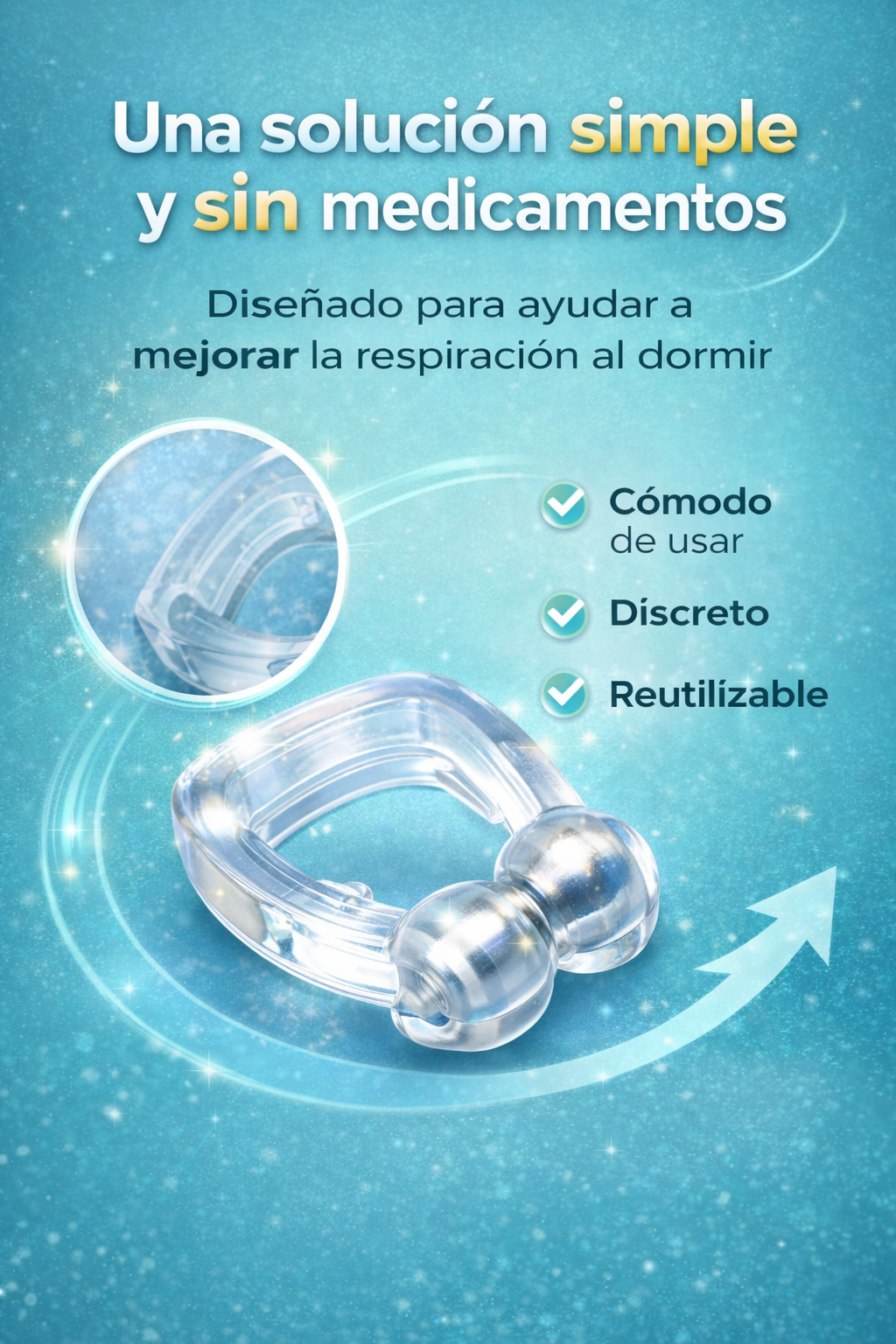 Al no utilizar medicamentos, químicos ni electricidad, SleepClip™ es una alternativa segura para uso continuo, incluso a largo plazo, sin generar dependencia ni efectos adversos.